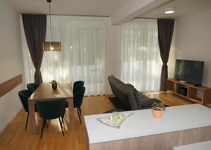 Een oven en een vaatwasser zijn er beschikbaar in een ingerichte kitchenette van het appartement. DeVzpenjaca bushalte is op 350 meter. Op een terras met prachtige bergzichten kunt u van een kopje thee genieten.